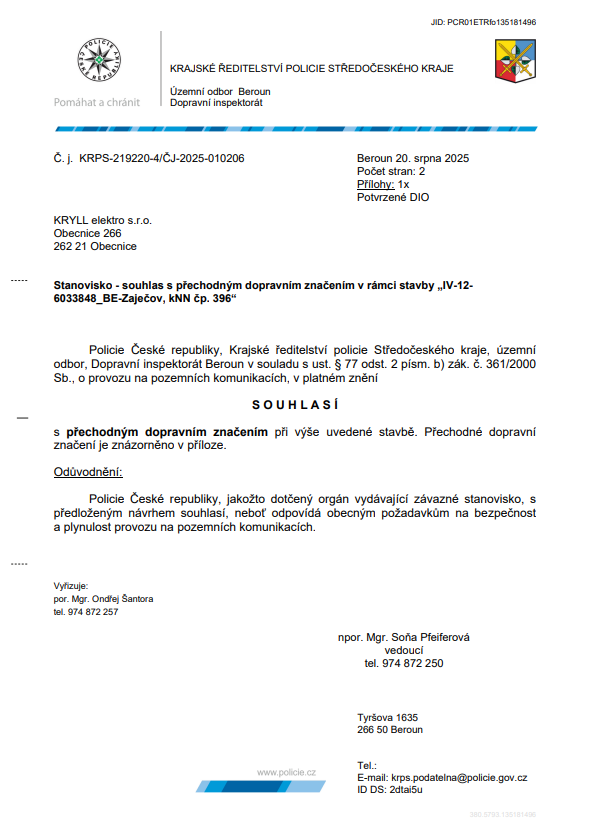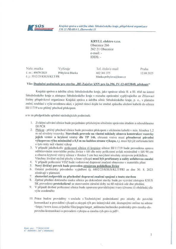 UZAVÍRKA SILNICE ZAJEČOV - TĚNĚ z důvodu pokládky nového kabelového vedení NN.